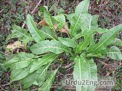 | Any of certain coarse weedy plants with long taproots, sometimes used as table greens or in folk medicine. | ایک قسم کا پودا |