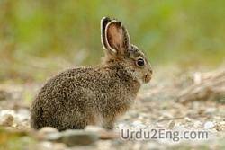| Swift timid long-eared mammal larger than a rabbit having a divided upper lip and long hind legs; young born furred and with open eyes. | خرگوش کی قسم کا کوئی جانور |