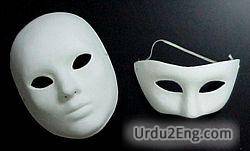 | Put a mask on or cover with a mask. Mask the children for Halloween. | نقاب کرنا |