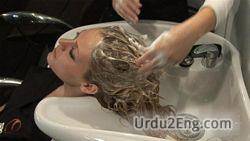| Cleansing agent consisting of soaps or detergents used for washing the hair. | شیمپو کرنا بالوں اور سر کو دہونے والا مواد |